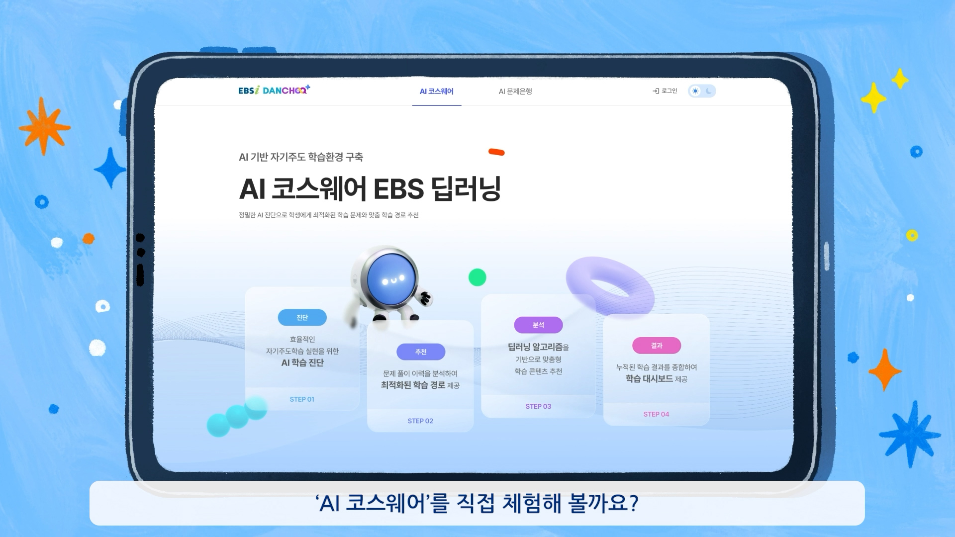 EBS ButtonPlus is an AI-based self-directed learning planner developed as part of the Button Learning Service Enhancement Project. Designed as a learning design system, it provides level-based problems according to each learner’s level of understanding and supports the creation of personalized learning methods tailored to individual abilities. As a one-stop learning platform that helps manage the entire learning process more efficiently, it focuses on delivering a customized learning experience for students.